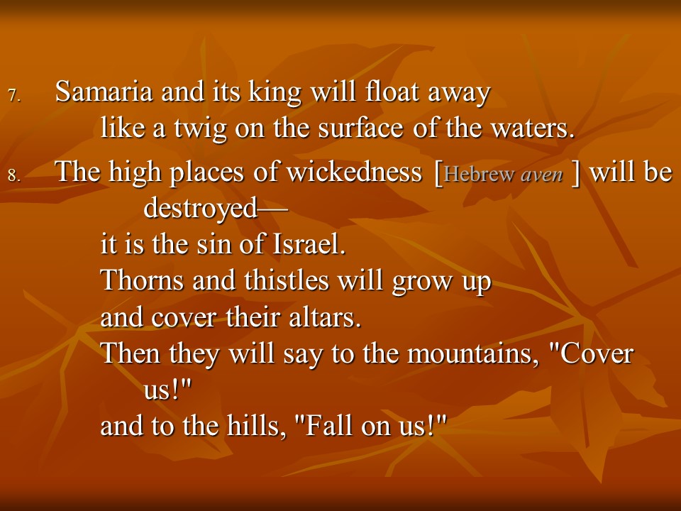 Hosea 10. Because of Israel’s sin it will be taken into captivity.