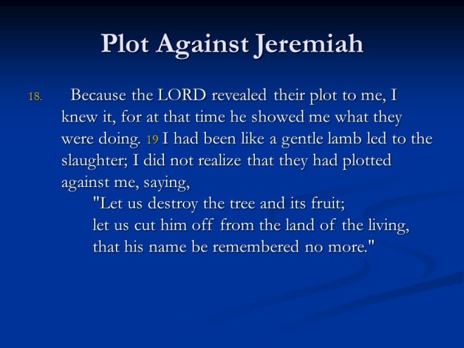 Jeremiah 11, the Broken Covenant, the Plot against Jeremiah.