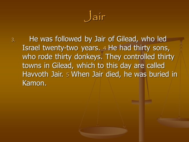 Judges 12, Jephthah’s Conflict with Ephraim, Ibzan, Elon, Abdon. Judges 12, Jephthah’s Conflict with Ephraim, Ibzan, Elon, Abdon.