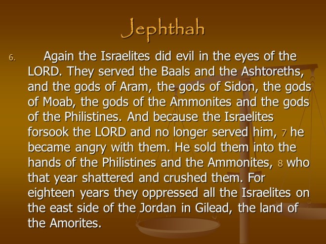 Judges 11, Jephthah, Jephthah’s Vow and Victory, Jephthah’s Daughter. Judges 11, Jephthah, Jephthah’s Vow and Victory, Jephthah’s Daughter.