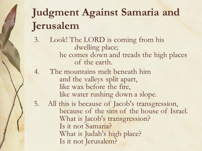 Micah 1, The Coming Judgment on Israel, Mourning for Israel and Judah. Micah 1, The Coming Judgment on Israel, Mourning for Israel and Judah.