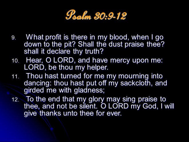 Psalm 30, for the dedication of the Temple. Of David. Psalm 30, for the dedication of the Temple. Of David.