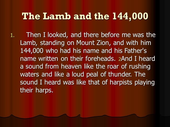 Revelation 14, The Lamb and the 144000, Proclamation of Three Angels, Reaping the Earth’s harvest, Reaping the Grapes of Wrath. Revelation 14, The Lamb and the 144000, Proclamation of Three Angels, Reaping the Earth’s harvest, Reaping the Grapes of Wrath.