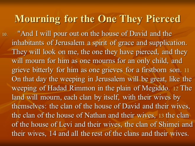 Zechariah 12, The Coming Deliverance of Judah, Mourning for the Pierced One. Zechariah 12, The Coming Deliverance of Judah, Mourning for the Pierced One.
