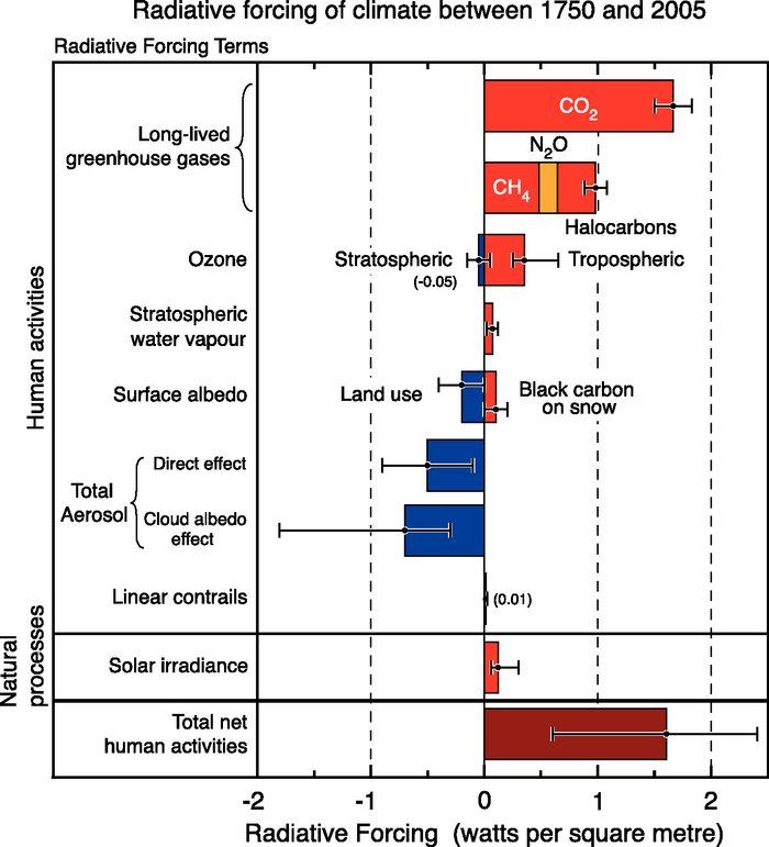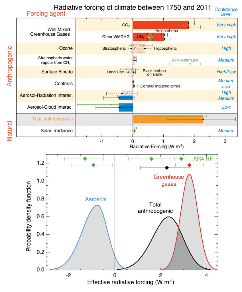 The following picture is from IPCC AR5 showing 1750 to 2009