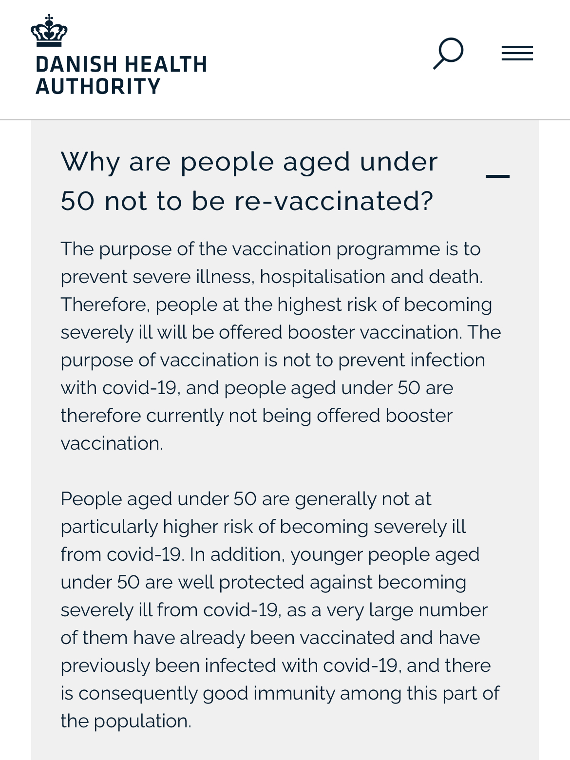 And it is about time. The data all over the world is showing that the COVID vaccines do more harm than good for people under 50. In U.K. the February COVID-19 deaths were 90% from vaccinated people, making the vaccinated death rate at least twice as high as from the un-vaccinated, see results here. This was clear a year ago in U.S. as well, see here. Since then it has been clear that only very vulnerable people under the age of 45-60 should be boosted or even vaccinated.