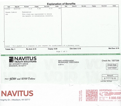 Yesterday I received a reimbursement for overpaying a drug. They really try to control drug costs!