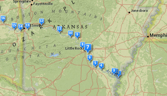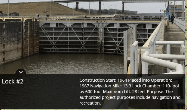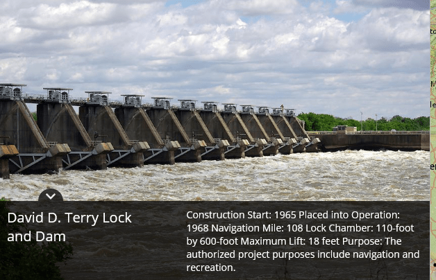Location of the locks and pumping stations on the Arkansas river.