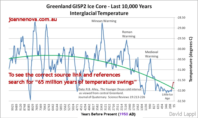 We are near the end of the interglacial period, and from now on we will slowly enter a new ice age at a rate of 1C per 2000 years.