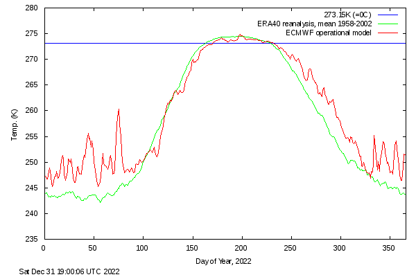 North America has great rivers, none greater than the mighty Mississippi. It used to be a meandering river with frequent floods that resulted in depositing its silt over large areas and thus fertilizing the land. The Indians living by the river moved to its new location after the water receded, and they could use the newly fertilized land. After the Louisiana purchase river traffic grew rapidly, but shifting sandbars and the excessively winding river became a problem, so the Mississippi river was converted to be the main transportation artery of the middle USA, the river banks were reinforced and the course of the river straightened. This meant that more of the silt was transported out into the Mexican Gulf, some of the silt that used to fertilize the soil instead fertilized the Mexican gulf. In addition, the Mississippi river used to be very polluted, but is now clean enough that it can be used for drinking water after treatment all the way down into Louisiana. There remains elevated concentration of nitrogen compounds so the Mexican Gulf suffers from excessive algae blooms and even red tide from time to time. This leads to more cloud formation and more rain in the United States east of the 98th meridian. This also occurs in Northern Europe, especially in the North Sea; the rivers flowing into the North Sea are rich in nutrients. The Baltic Sea was near oxygen death, but after the Baltic countries and Poland joined the EU, their rivers got partially cleaned up. In the far East the Yellow Sea and the South China sea are suffering major pollution. All these regions produce more clouds, and through prevailing winds some end up in the Arctic, where they snow out, except in the Summer when they rain out except on Greenland where it snows 12 months of the year. This leads to increasing winter temperatures of about 5.5 C above the 80th latitude, 2.5 C in spring and fall and a decrease of about 0.5 C in the summer (it takes a long time to melt that extra snow). This affects about 4% of the earth’s surface, so the total temperature increase from over-fertilizing the rivers is 0.04 * 2.5 = 0.1 C. No such effect occurs in the Antarctic. To illustrate the current yearly temperature trend in the Arctic, see this current polar temperature chart: