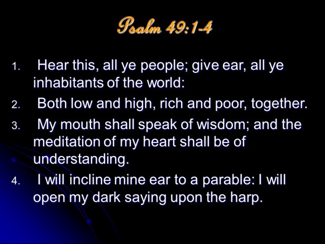 Psalm 49, of the Sons of Korah.