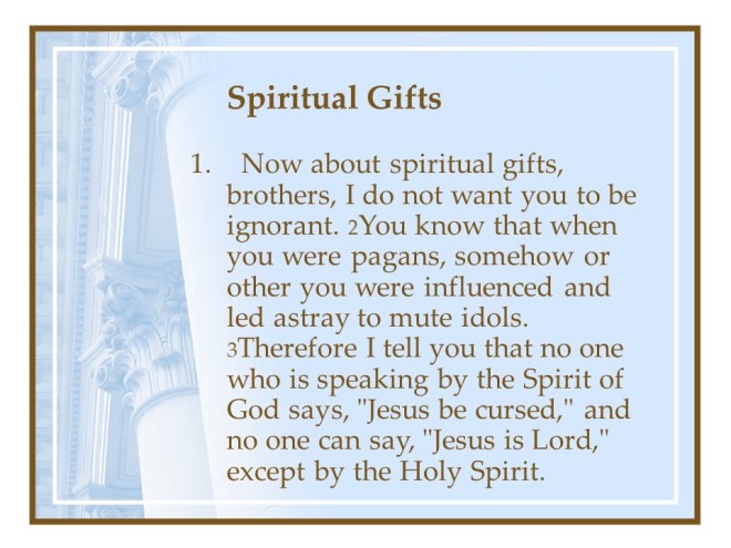 1 Corinthians 12. The Apostle Paul instructed the Corinthians there are different spiritual gifts, but the same God works in all of them. There is unity in diversity, and all Christians are one body in Christ, one body with many parts and all are important for “by one spirit are we all baptized into one body” so now Paul says “ye are the body of Christ.” As to gifts there is a more excellent way, which will be revealed in the next chapter.