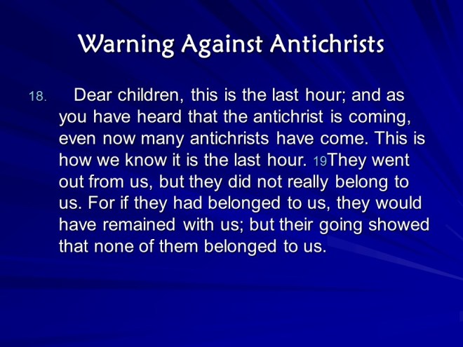 1 John 2:18-29. The Apostle John explained there will come a last hour’s deception, so let the truth abide in You. Remember you are children of God.