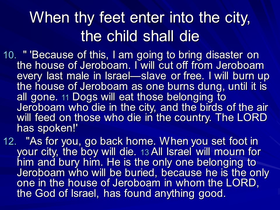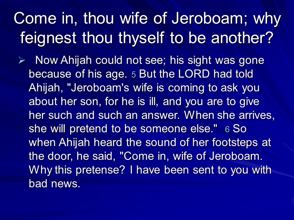 Not much good in 1 Kings 14, it tells of judgment on the house of Jeroboam and his death, and Rehoboam taking over power and his death.