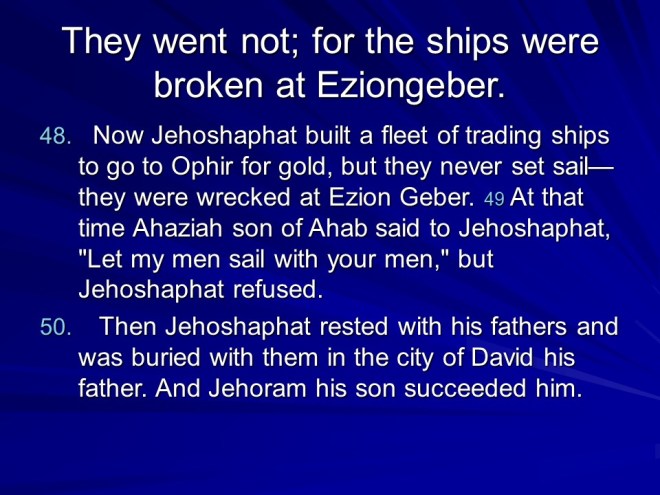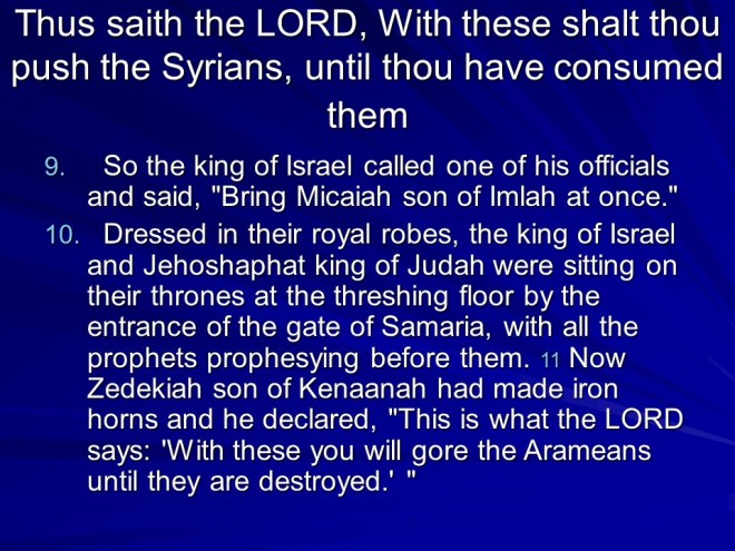 1 Kings 20. Ahab defeated the Syrians and he did it twice. After that Ahab made a treaty with Ben-Hadad, and that led to the prophecy of Ahab’s Condemnation.