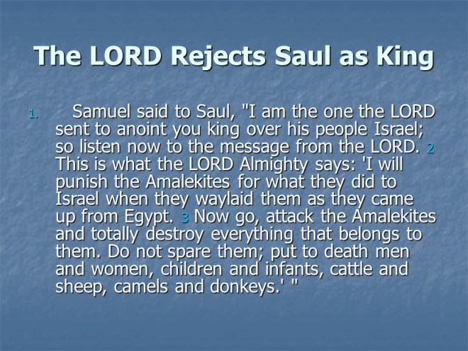 1 Samuel 15, the chapter where Saul is rejected as King.
