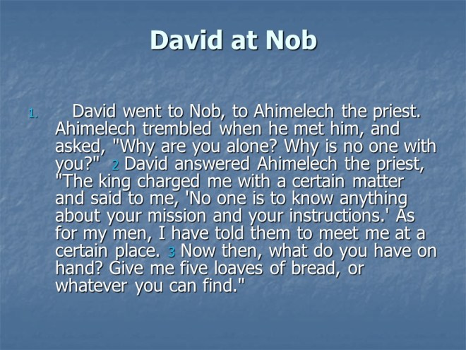 In 1 Samuel 21 David and his men ate from the Holy Showbread. After that David fled to the Philistine city-state of Gath and pretended to be insane to stay alive.