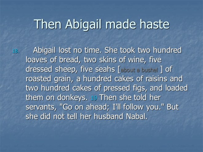 1 Samuel 25 records Samuel’s death. It also tells the vivid story of David and Abigail, the wife of Nabal.