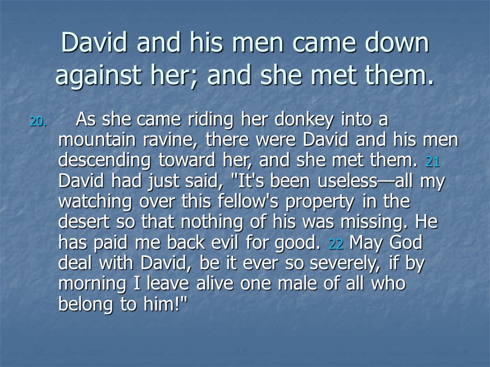 1 Samuel 25 records Samuel’s Death. It also tells the vivid story of David and Abigail, the Wife of Nabal.