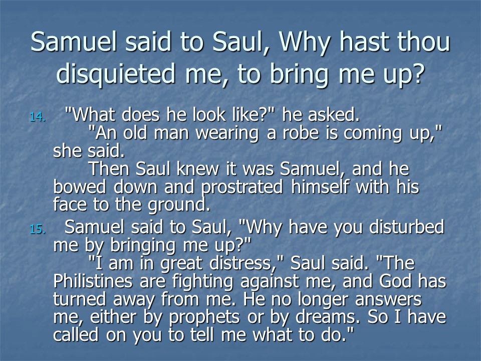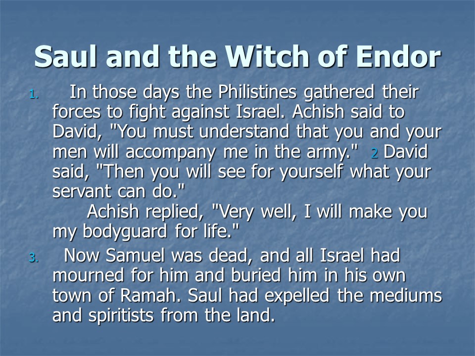 In 1 Samuel 28 David was among the Philistines and Saul consulted a woman with a familiar spirit, the witch at En Dor. The medium did bring up Samuel!