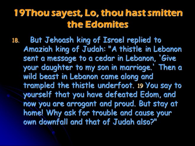 2 Chronicles 25, Amaziah Reigns in Judah, the War against Edom, Israel Defeats Judah, Death of Amaziah.