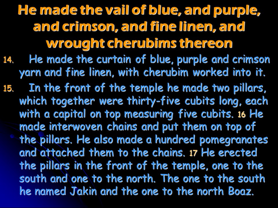 2 Chronicles 4 contains a listing of the temple furnishings.