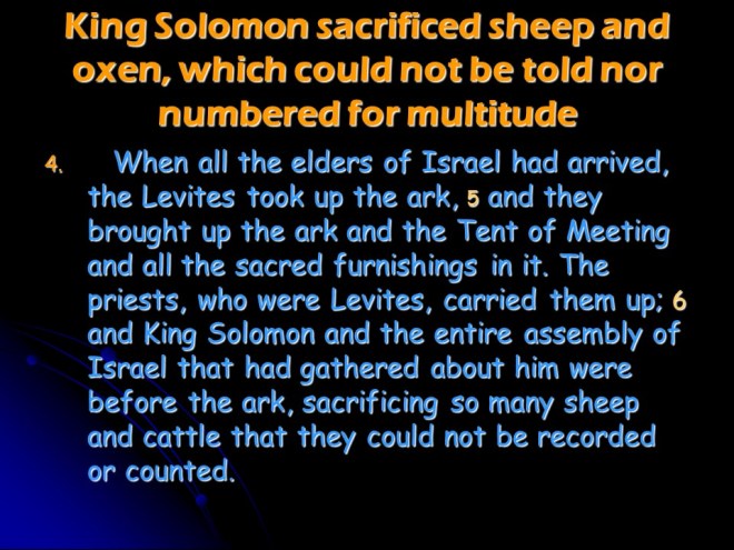 2 Chronicles 3. Solomon did build the temple to man’s standard, six hands to a cubit. He even used gold nails instead of iron nails in the ceiling, far more gold than was called for in the tabernacle.