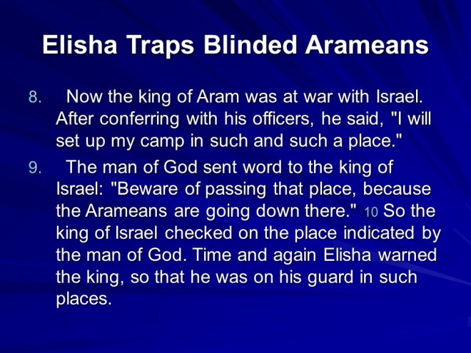 2 Kings 6, The Floating Ax Head, The Blinded Syrians Captured, Syria Besieges Samaria with Famine.