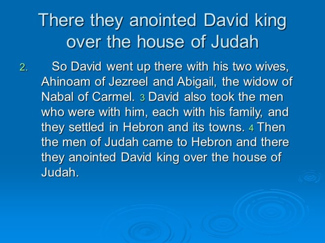 In 2 Samuel 2 David was anointed King of Judah, and Ishboseth, son of Saul was made King of Israel, which led to Israel and Judah waging war against each other.