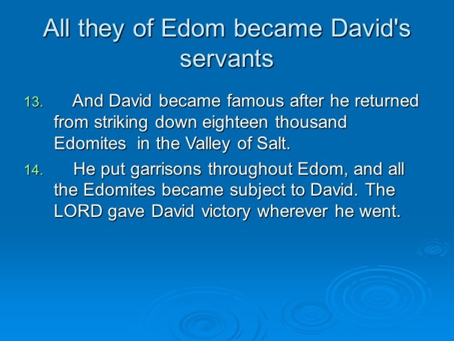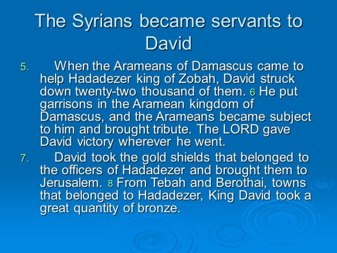 2 Samuel 8, is a record of how David’s Kingdom expanded. It also lists David’s Officials.