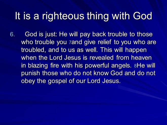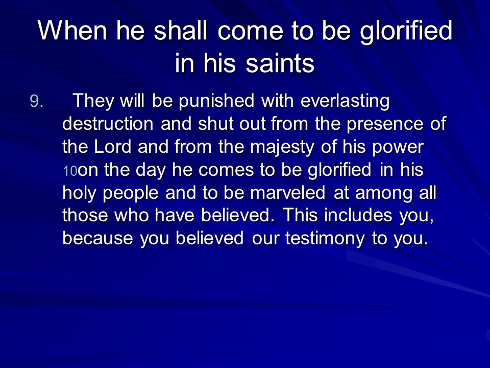 2 Thessalonians 1. After the customary greeting and prayer of thanksgiving, the Apostle Paul dealt with God’s final judgment and God’s glory.