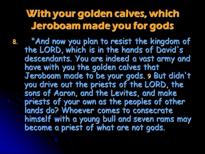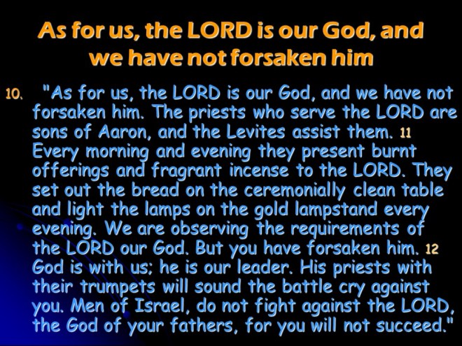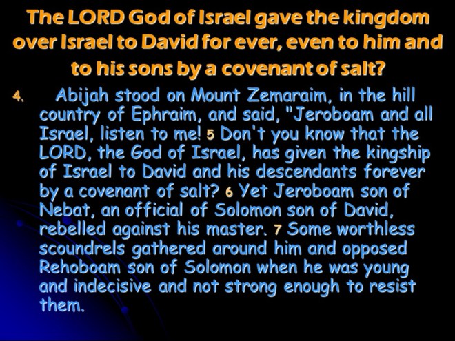 2 Chronicles 13 tells of Abijah’s reign in Judah.