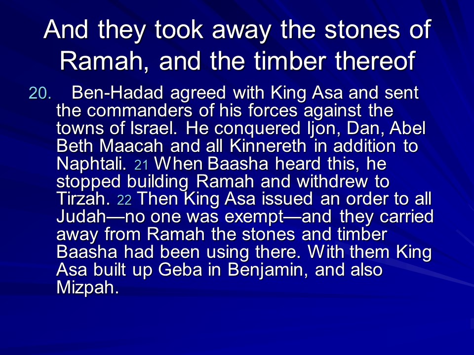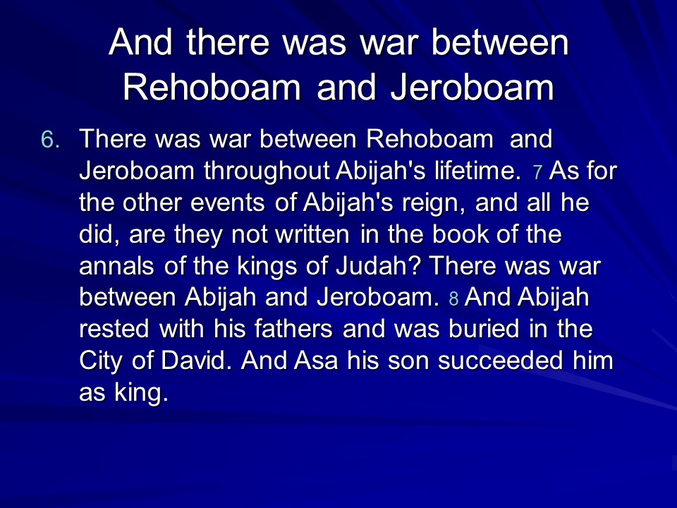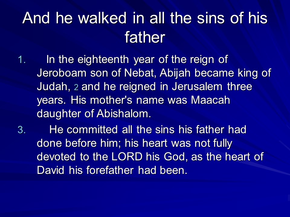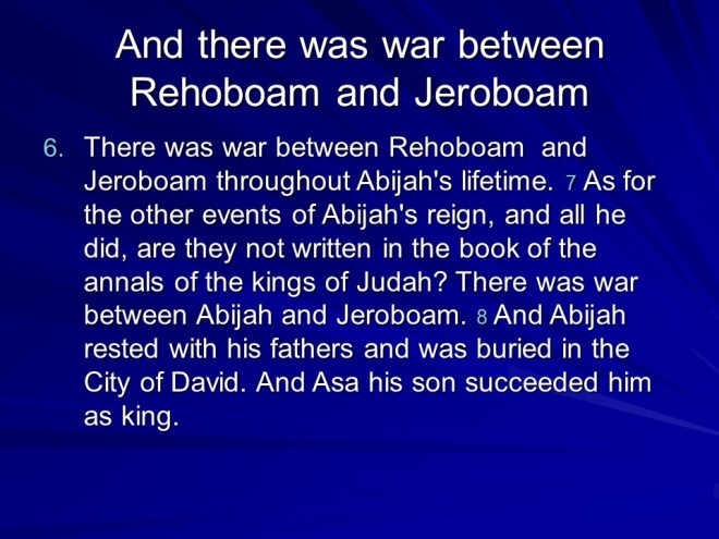 1 Kings 15, the evil king Abijam reigned in Judah. After his death Asa became king over Judah and he was a good king. Meanwhile in Israel Nadab reigned, and after him Baasha both doing evil things in the eyes of the LORD.
