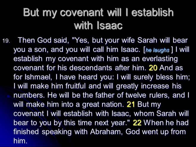 After explaining God’s intervention the Quran introduces the birth of Isaac, which to a Muslim means the son of Abraham offered up on mount Moriah was Ishmael.