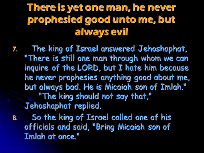 2 Chronicles 18, Micaiah Warns Ahab, Ahab Dies in Battle. 2 Chronicles 18, Micaiah Warns Ahab, Ahab Dies in Battle.