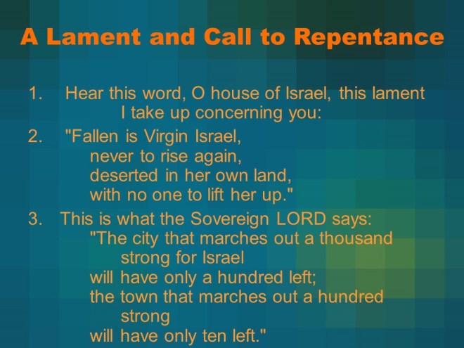 Amos 5. The prophet gave a lament for Israel and issued another call to repentance, but in vain. The Day of the LORD would still come.