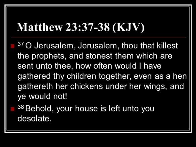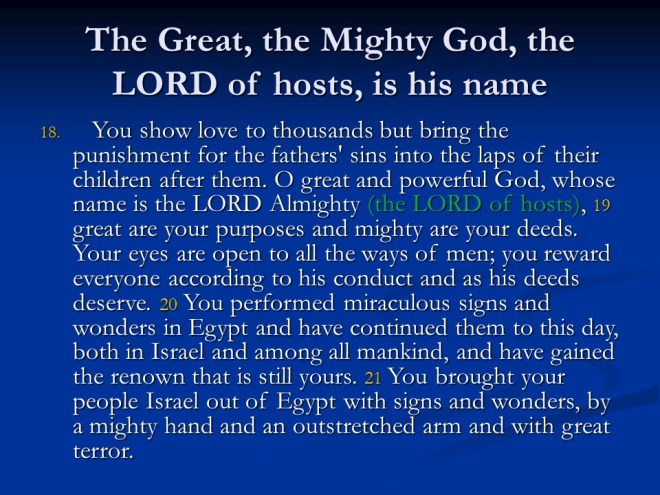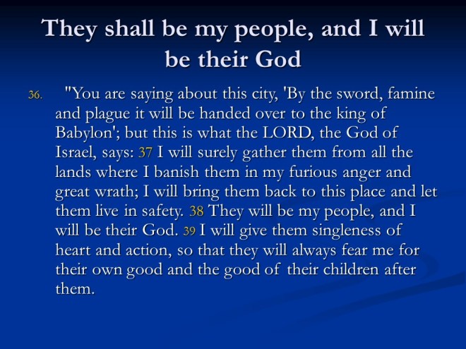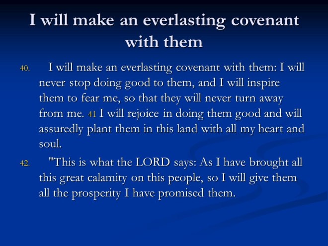 Jeremiah 33. The restoration of Israel is foretold, and the permanence of God’s Covenant with the house of David is restated.