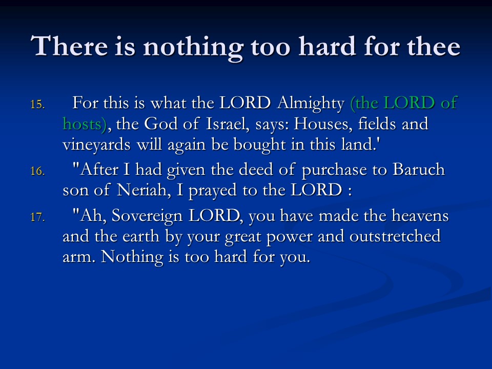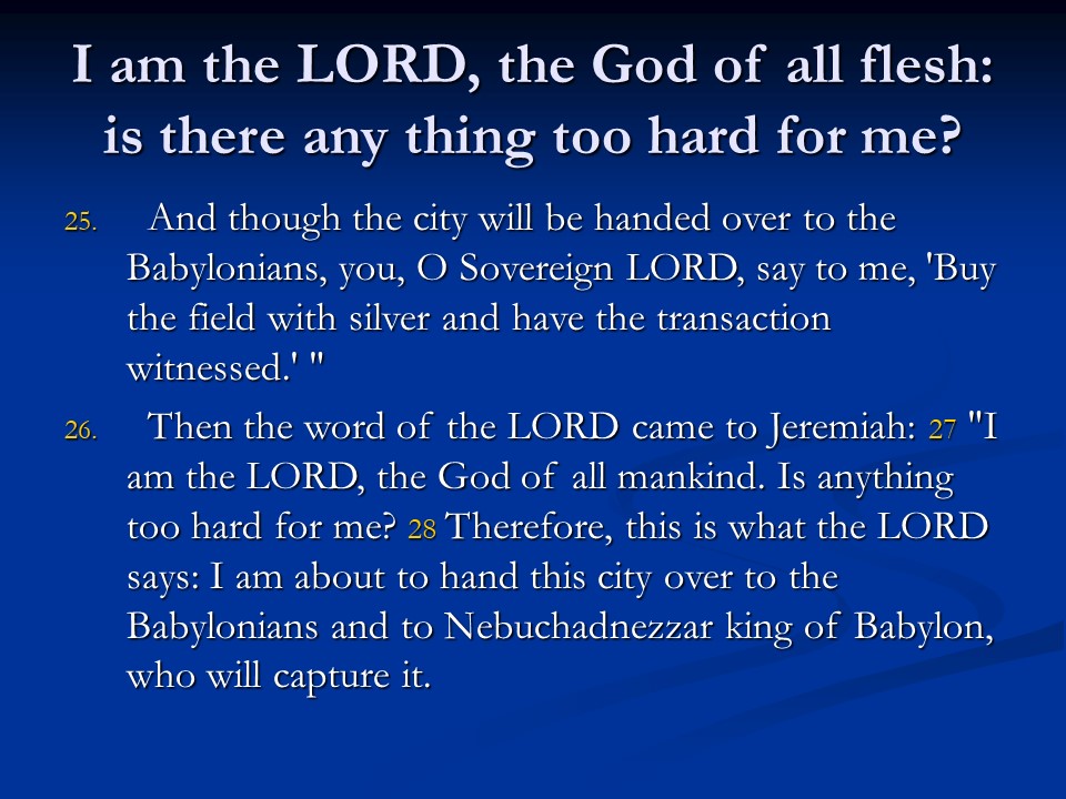 Jeremiah 32. With everything else going on, Jeremiah bought a field, the field of Anathoth, and then he prayed for understanding. God reassured Jeremiah that the people would return.