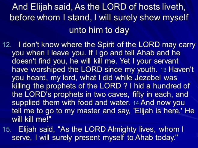 1 Kings 18, Elijah’s Message to Ahab, Elijah’s Mount Carmel Victory.