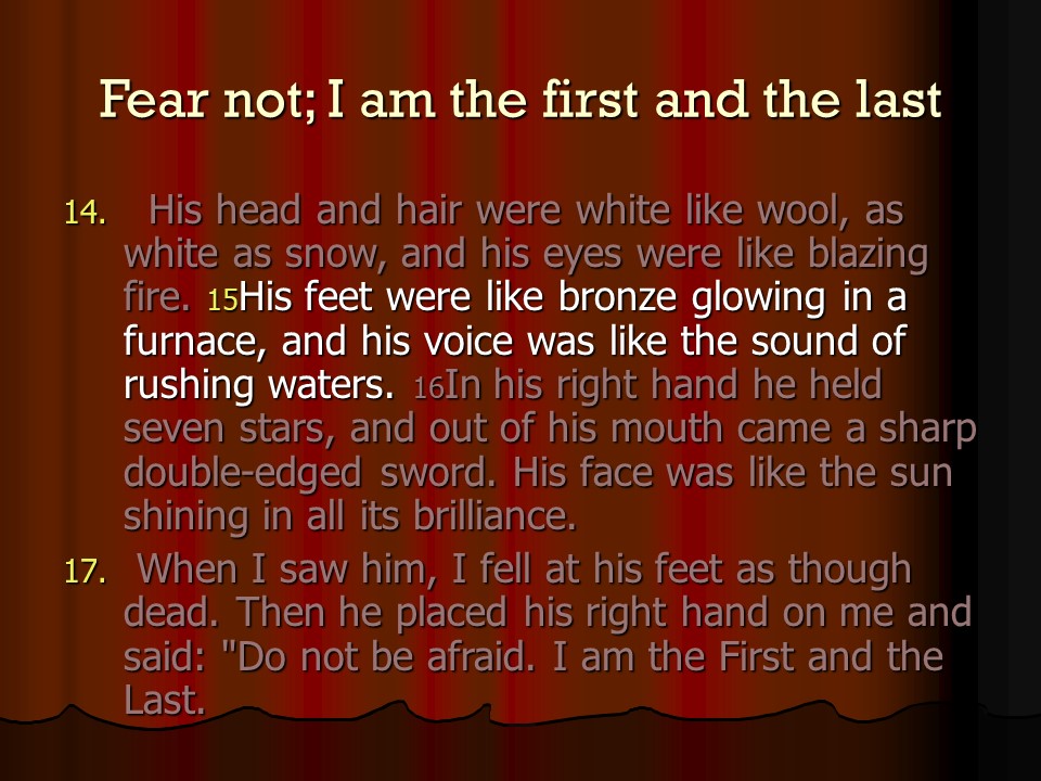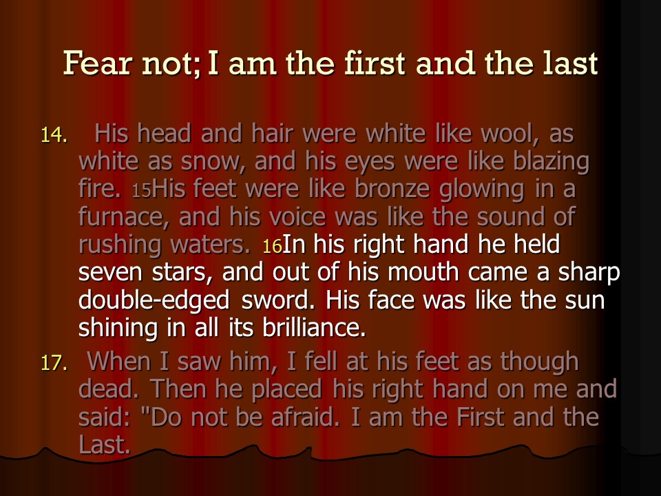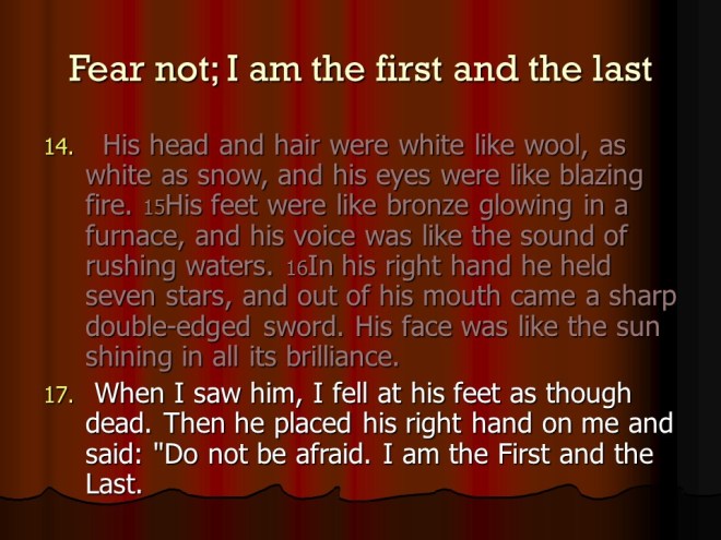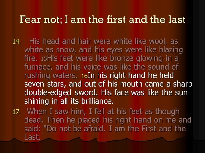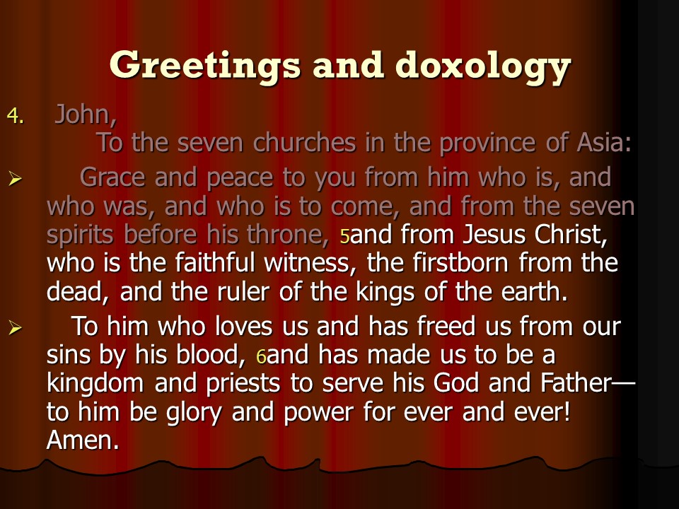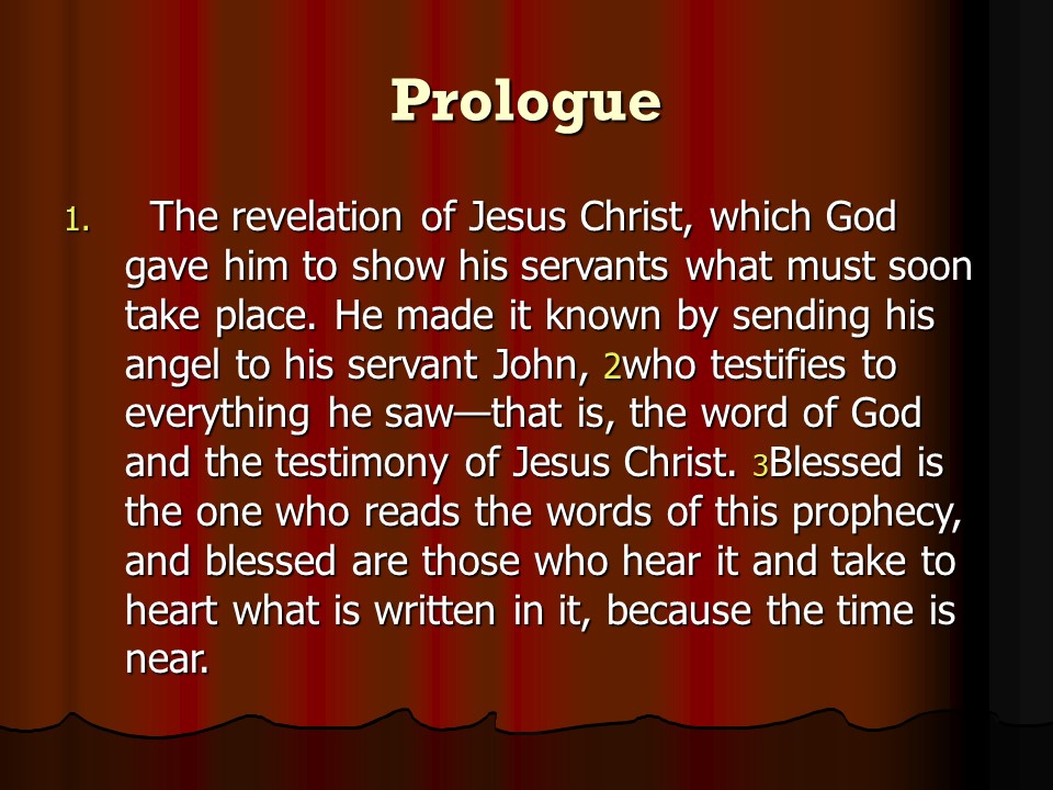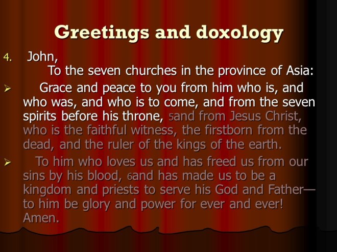 Revelation 1, Introduction, Benediction, Greeting the Seven Churches, Vision of the Son of Man.