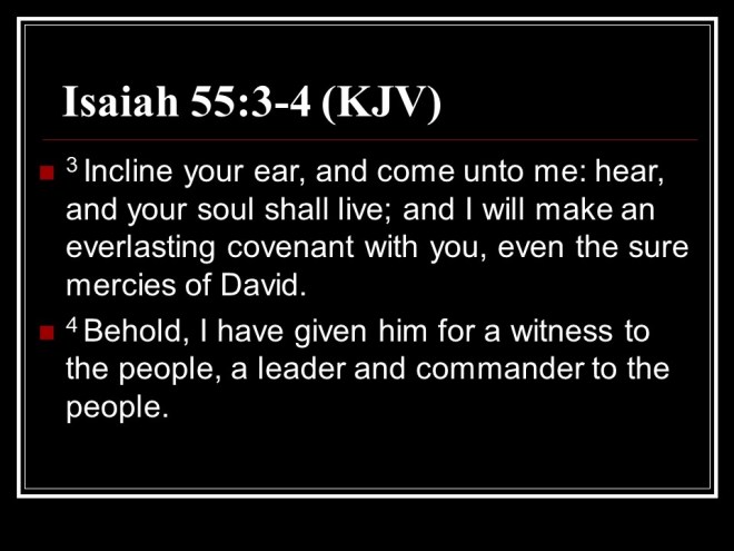 Jeremiah 33. The restoration of Israel is foretold, and the permanence of God’s Covenant with the house of David is restated.