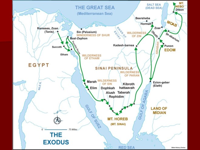 The alternate route, favored by Muslims is to place the Red Sea crossing at the mouth of the Gulf of Aqaba, placing Mt Sinai in the Levant rather than the Sinai Peninsula. This would have posed major logistical problems for the Israelis, going all the way from Egypt to the Gulf of Aqaba with food from Egypt.