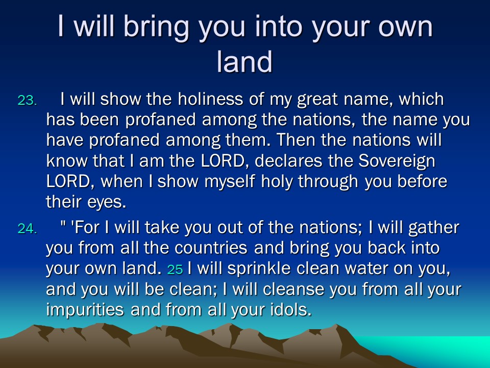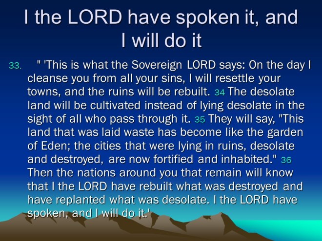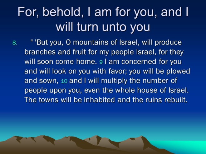Ezekiel 36. Now it is getting interesting. God proclaimed a future blessing on Israel and the rebirth of Israel. (I took the liberty to put in a few interesting pictures.)