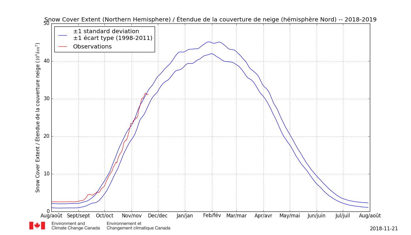 This chart is from yesterday and is from the Canadian department of ‘Environment and Climate Change’, so we can rest assured that the amount of snow cover is not over-estimated.