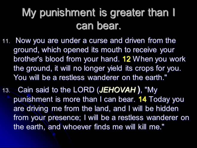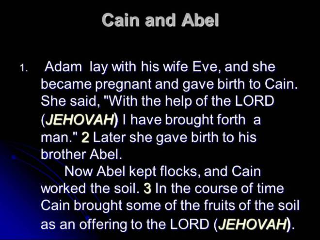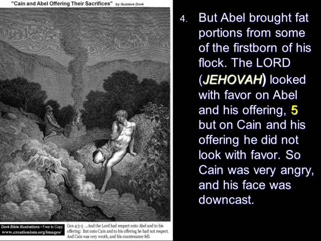 Genesis 4 tells of the results of original sin with the story of Cain and Abel and the beginning of animal sacrifice.