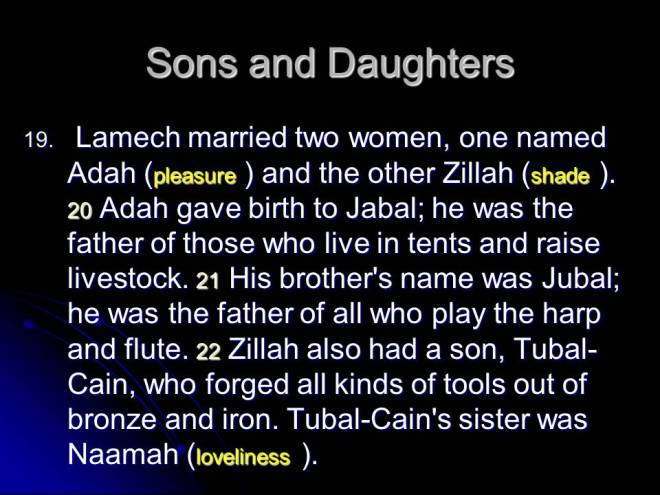The take home for today is there are two births, the physical birth and the spiritual birth (the birth from above), the first murder, the first man (Enoch) to be carried directly to God rather than die. (because ha walked with God).