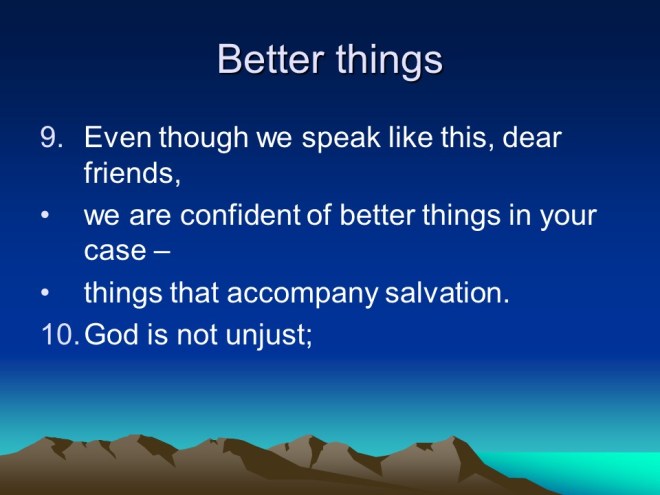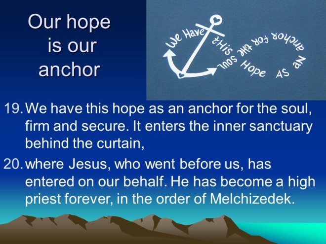 Hebrews 6 speaks of salvation: Can you lose it, or are you eternally secure? Here I do an exposure explaining the different positions taken by the Roman Catholic Church, the Arminian position, the Calvin Position and the position of the author of the letter. It is quite interesting and enlightening. The chapter ends in hope: “That by two immutable things, in which it was impossible for God to lie, we might have a strong consolation, who have fled for refuge to lay hold upon the hope set before us:Which hope we have as an anchor of the soul”