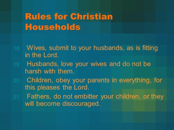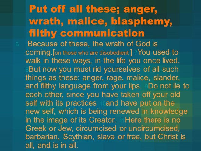 Colossians 3:1-17. The Apostle Paul listed the rules for holy living; not carnality but Christ, the character of the New Man and proper relationships in the christian home.