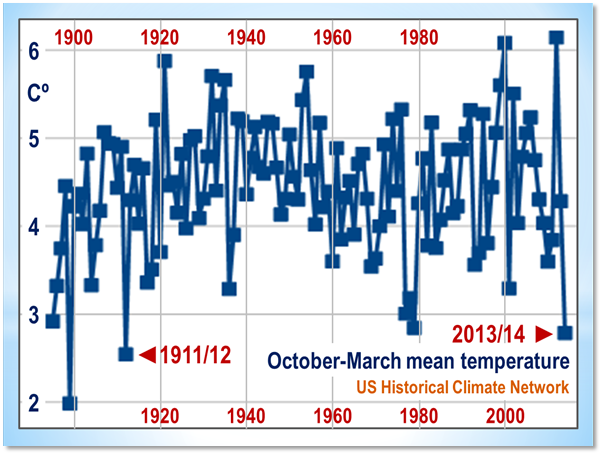 As we can see from this picture, the winters were about 5 degrees warmer, but starting from late May through early August temperatures were lower. It takes time to melt all the extra snow that fell because of the warmer winter air, able to contain more ice crystals.