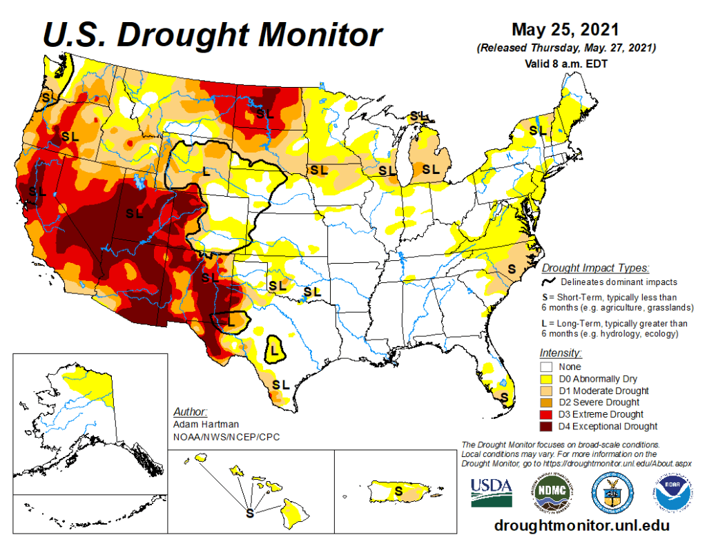 So, how is the water situation in the South-west? Right now they are in the most severe drought since 2016. Here is the map: